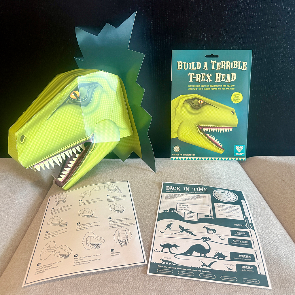 Create a terrible terrifying T-Rex head to hang on your bedroom wall—it looks like a mighty dinosaur is crashing right into your room! This hands-on craft kit lets kids build their own prehistoric beast while sparking creativity, curiosity, and endless roars of fun.