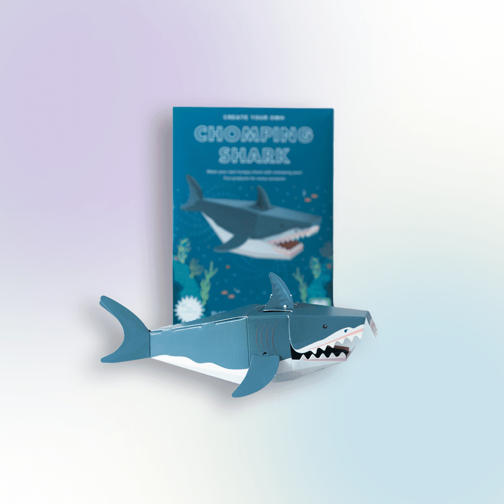 Make your very own mini shark with chomping jaws — then dive into a fun-filled ocean game! Challenge your friends to dodge the shark and see if you can stay at the top of the food chain. Packed with sea creature facts, silly shark jokes, and hands-on play, this eco-friendly craft kit brings learning and laughter together.