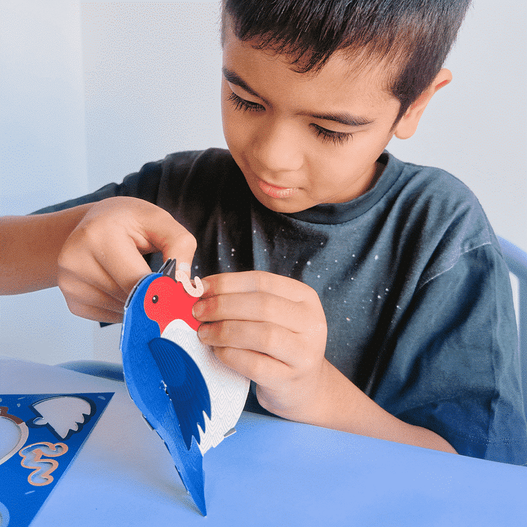 Packed with bird jokes, fun facts, and playful activities, this eco-friendly craft kit helps children learn about wildlife while enjoying hands-on creativity. No glue, no scissors — just pure, planet-friendly fun!